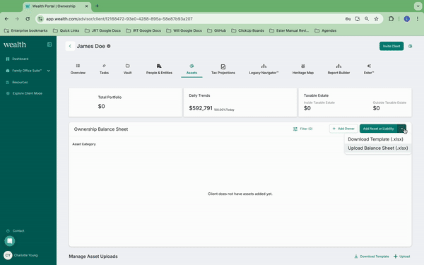 In addition to importing assets to set up your client’s balance sheets, you’re able to upload additional files to continue to add information as their portfolio expands over time.